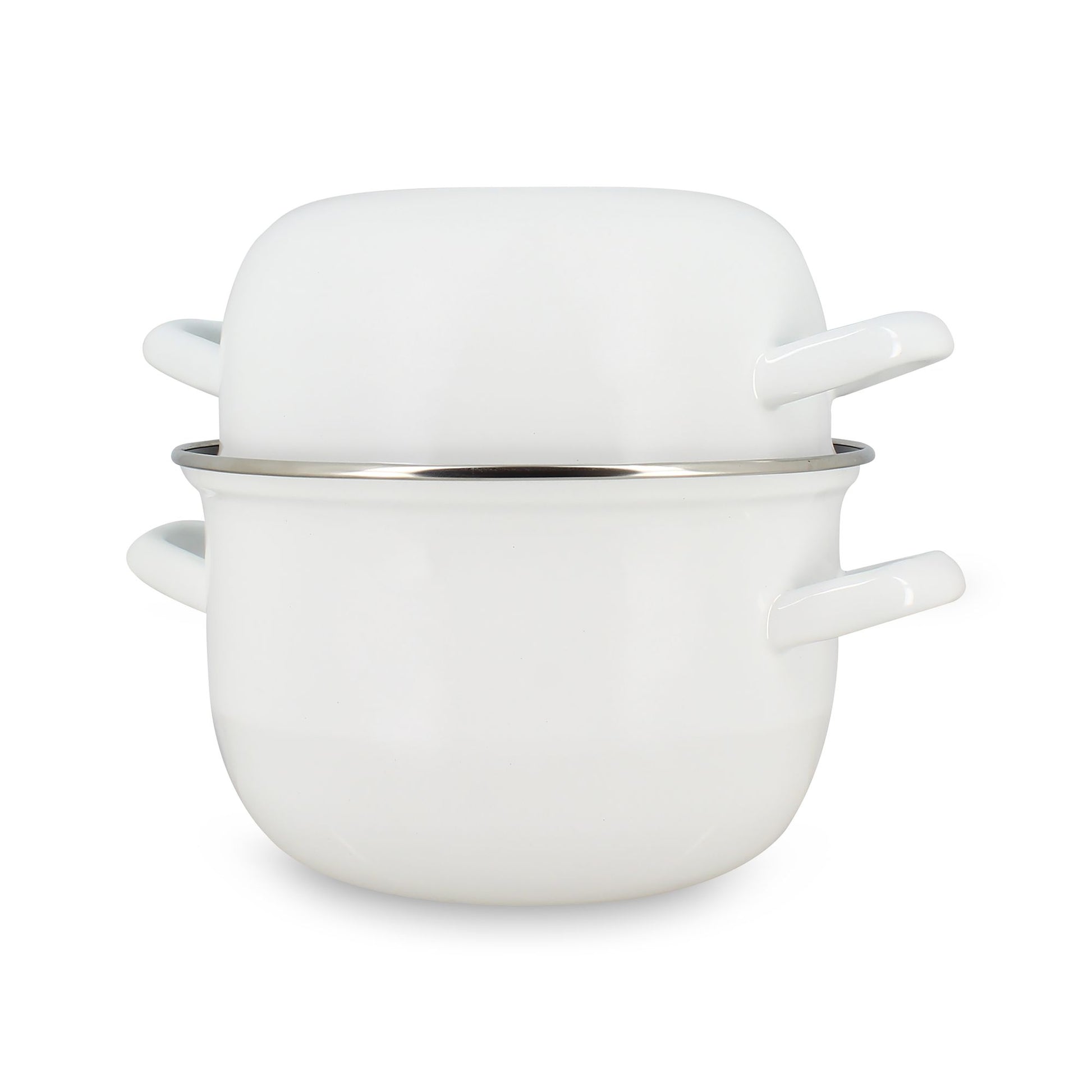 This enameled steel pot allows you to prepare mussels like in a restaurant. and serve them directly without having to change the dish. The enameled steel allows for even heat distribution. The lid turns over and can be used as a dish or container for empty shells.