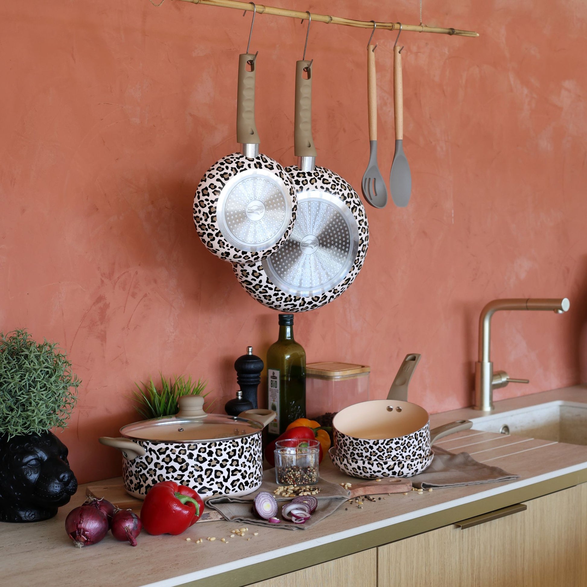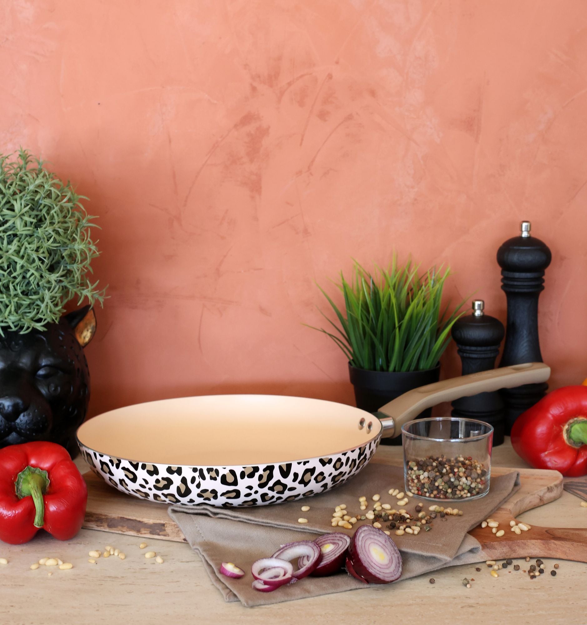 With its bold brown or pink leopard pattern , the Leopard collection from Menastyl does not go unnoticed. It transforms your utensils into real culinary decoration elements, for a kitchen that is both trendy and full of character . Ideal for those who like to think outside the box, this range combines assertive style and everyday efficiency .