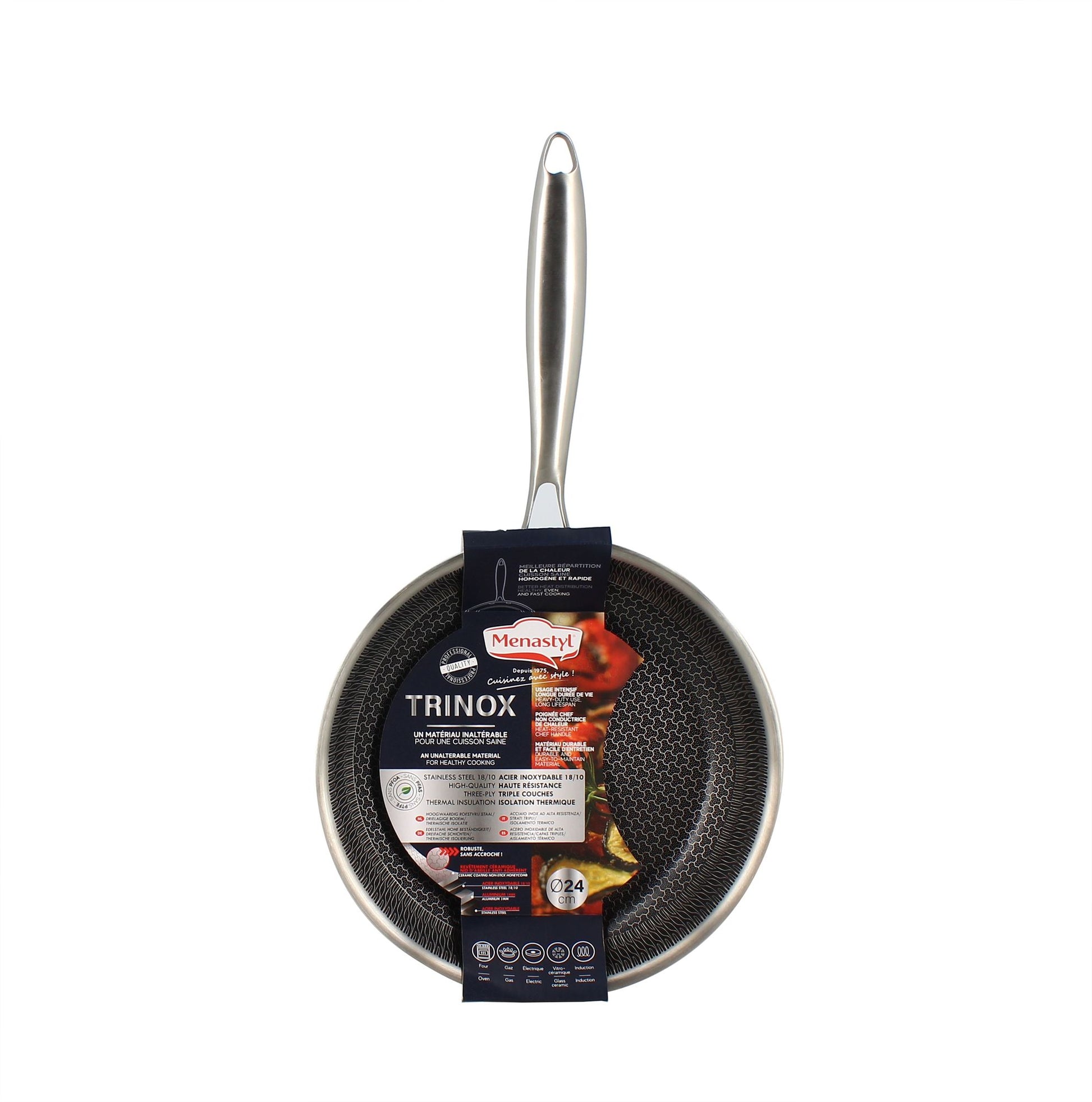 Poêle Trinox Ø24 cm en acier inoxydable avec revêtement antiadhésif sans PFAS