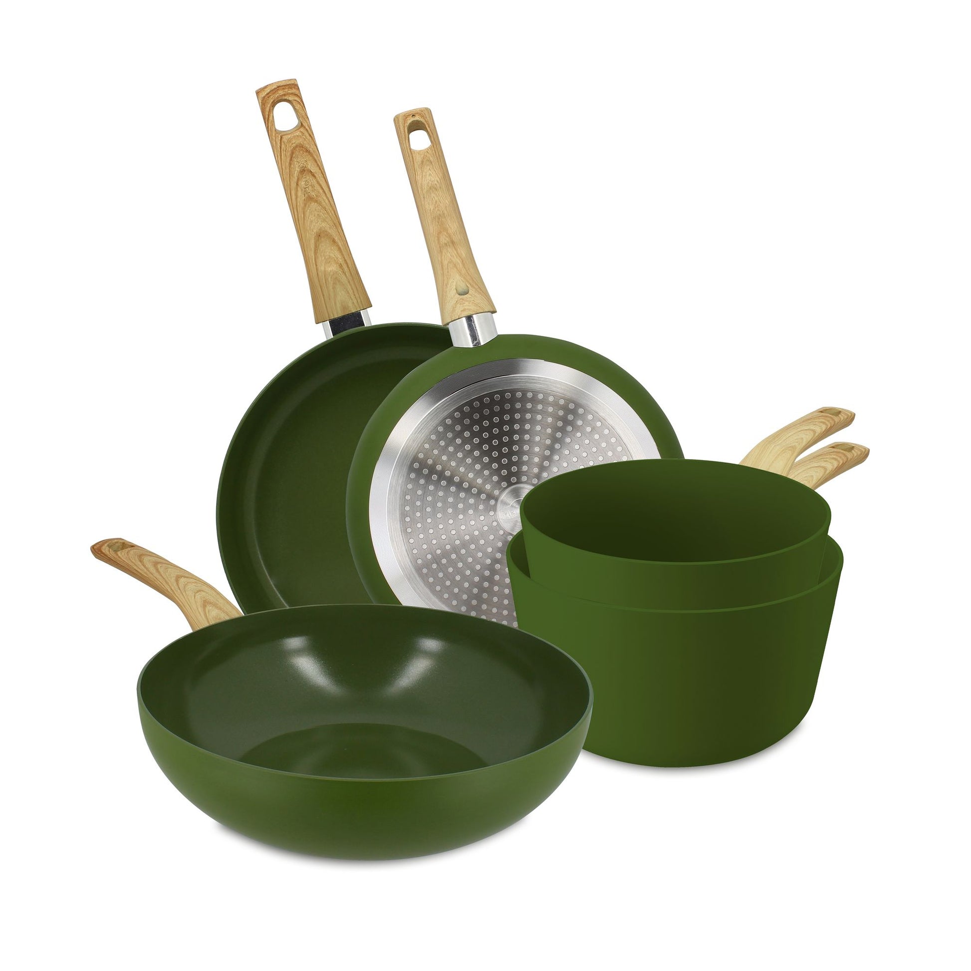 - These cookware sets, like all items in the Colorama range, feature a PFAS-free ceramic non-stick coating. This makes cooking easier and prevents your food from sticking to the pan's surface. Additionally, for healthier cooking, the non-stick coating allows you to cook with less fat.