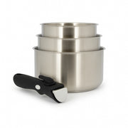 Ce set de 4 articles est composé de 3 casseroles en acier inoxydable 18/10 de 16,18 et 20 cm et d'une poignée amovible.