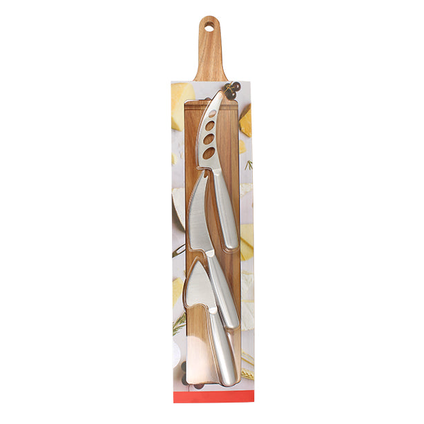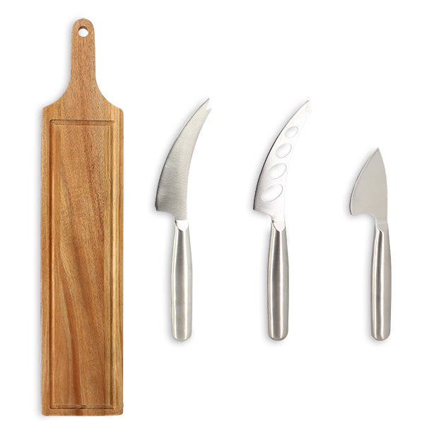 Planche à Découper Acacia 59×12 cm + 3 Couteaux à Fromage