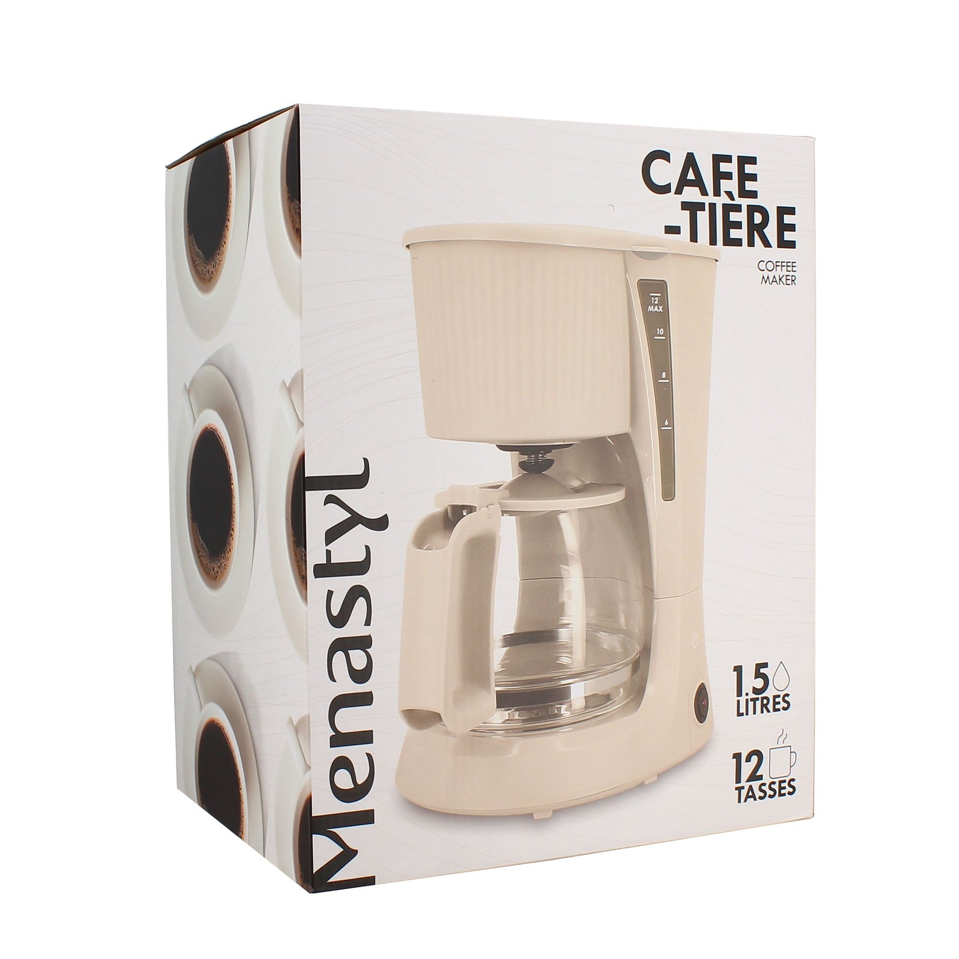 Cafetière 12 tasses 1,5L en polypropylène crème strié
