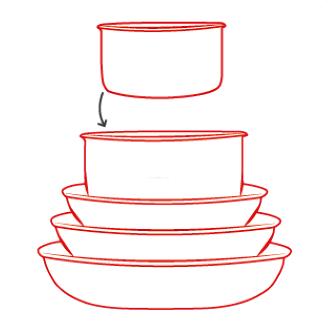 Grâce à la poignée amovible, empilez vos ustensiles et profitez d'un rangement optimisé dans les placards !