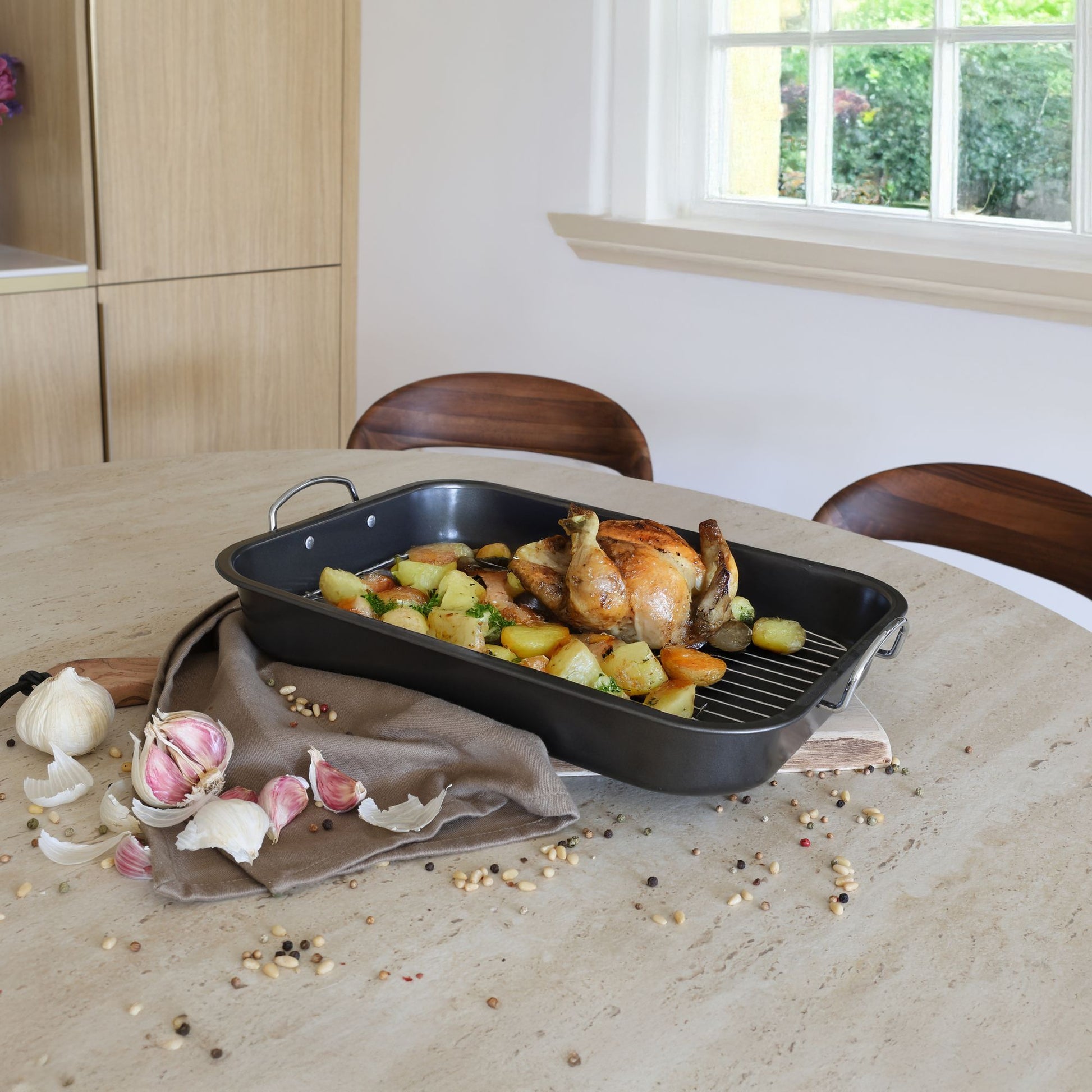 Ce plat rôtisserie 37 cm en acier carbone 0.4mm est anti-adhésif, solide et durable. La collection Amandine, c’est la compagne idéale de vos meilleures préparations salées et sucrées !