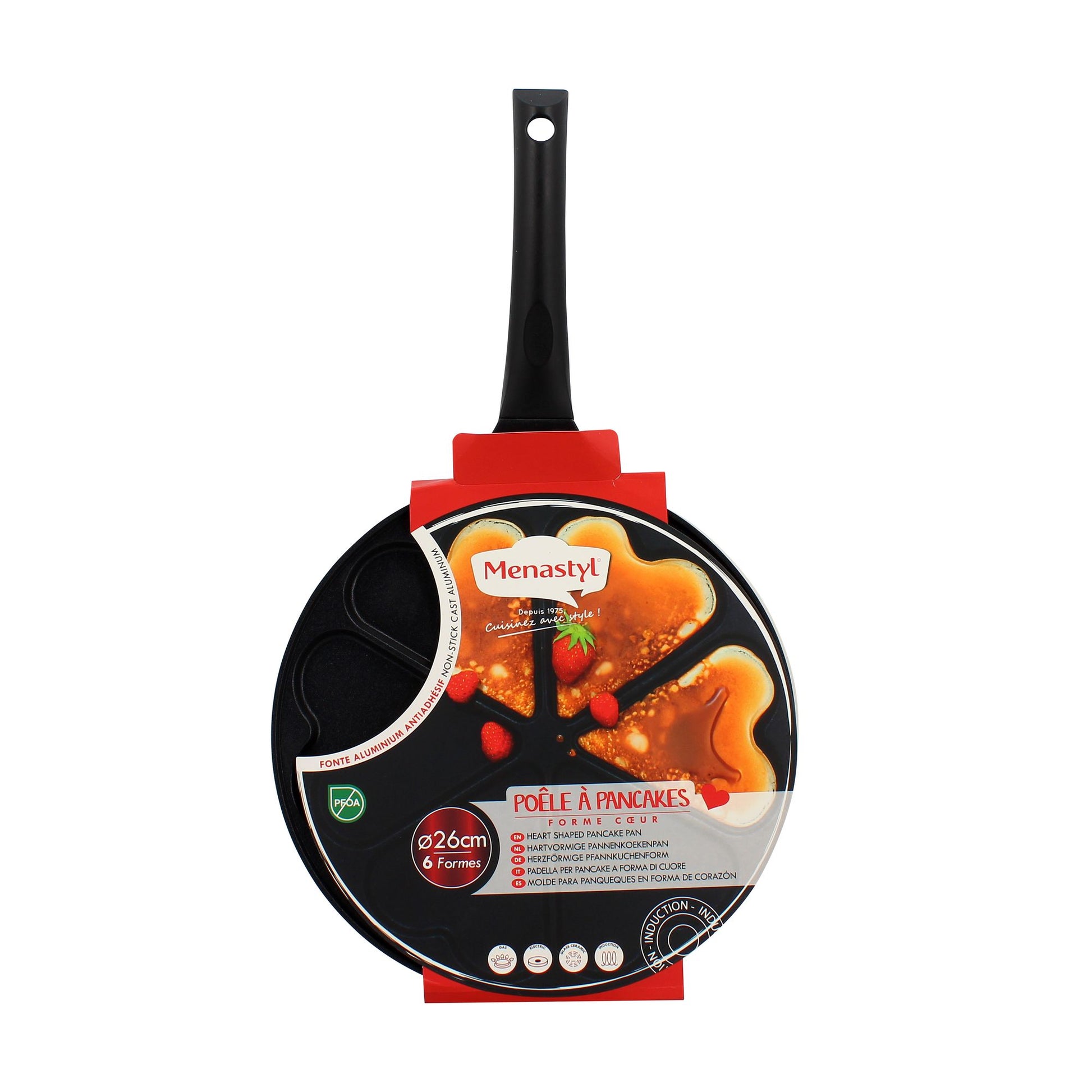 Poele à pancake en forme de cœur 26cm en aluminium 6 trous